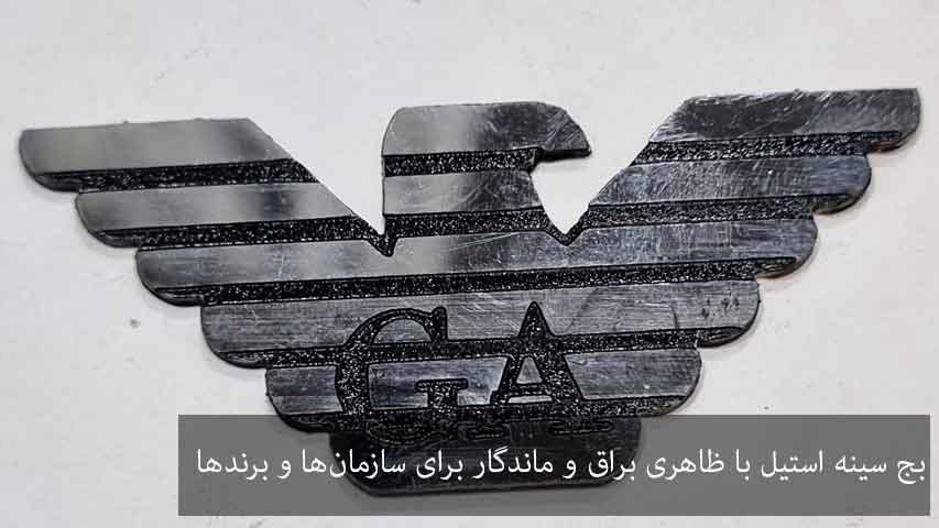 بج سینه استیل با ظاهری براق و ماندگار برای سازمانها و برندها